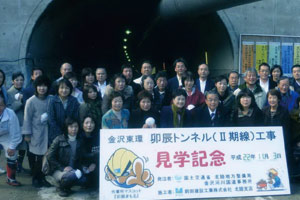 山側幹線の整備状況を視察した研修会 恒例の賢友会研修は、米沢賢司が長年にわたって推進している山側幹線の整備状況を実際に見ようと、11月3日の文化の日、4車線化が進む卯辰トンネルの工事現場を中心にバスツアーを行いました。卯辰トンネルでは掘削中のトンネル内を見学するという貴重な体験をし、環状道路視察の後、話題のしいのき迎賓館ポールボキューズでスペシャルランチを味わう楽しいひと時でした。 |