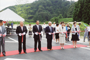 懸案の牧バイパス完成 平成3年から整備が進められていた県道清水小坂線牧バイパスは、昨年8月に「こまいぬはし」が完成し全線開通となりました。今までの見通しの悪さが一新され、利便性と安全性が格段と向上することになりました。8月11日、金沢市城北地区開発促進同盟会の会長を務める米沢賢司も出席し、牧町で開通式が行われました。こまいぬはしの銘板は、米沢賢司の揮毫によるものです。 |