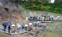 米沢賢司が推進に尽力してきた金沢城整備事業の玉泉院丸遺構の発掘・整備は、一昨年から調査発掘が始められ、往時の池泉回遊庭園の姿が明らかになってきました。11月19日に行われた玉泉院丸ガイドツアーには、雨天にもかかわらず定員を超える50人もの人々が参加し、市民の玉泉院丸に寄せる関心の高まりをうかがわせます。新たな魅力スポットの誕生が楽しみです。 |